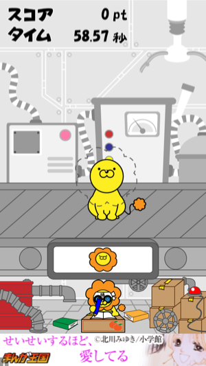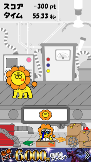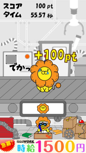 流れてくるライオンのタテガミを調度良く膨らます、楽しいワンタップ感覚ゲーム「ライオン工場 〜実はライオンは工場で作られていた!?〜」無料♪