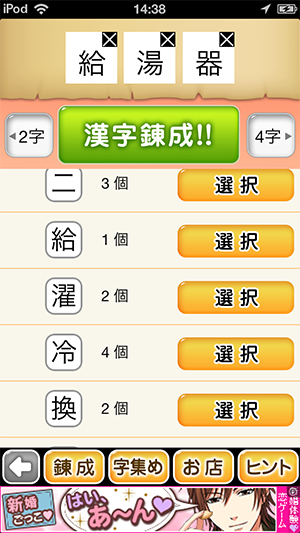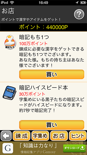 漢字を集めるのに便利なアイテムを購入できるよ。