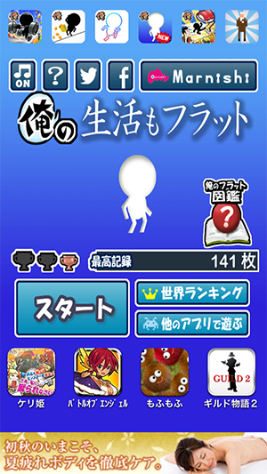 ふらふらした自堕落な棒人間をつっついて更正〜!がんばって真人間にしてあげよう「俺の生活もフラット」無料♪