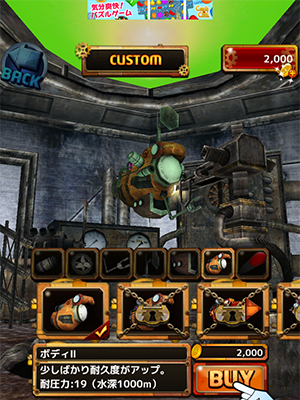 潜水艦のパーツを購入・強化できる