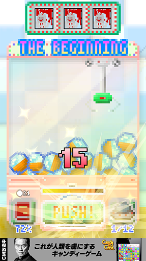 クレーンゲームは画面をタップするだけで、