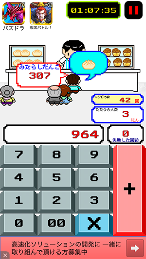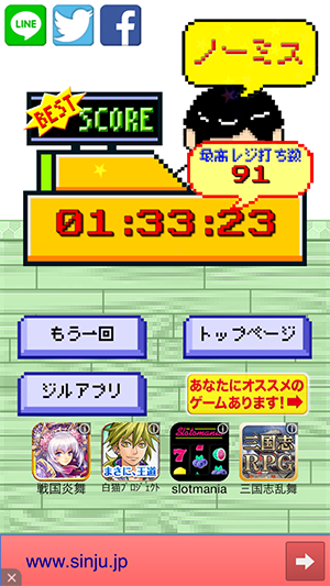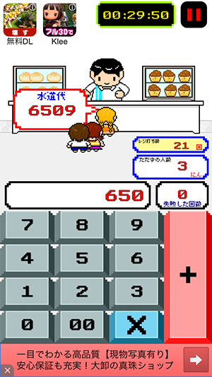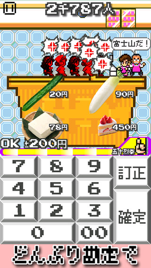 ミスしたり、レジ待ちが5人になったら、ゲームオーバーだよ。