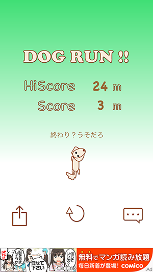 指一本で操作できる、縦スクロールのドッグラン・アクションゲームだよ〜