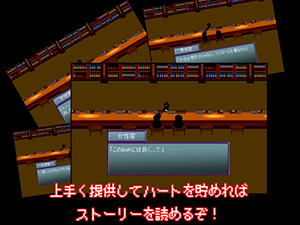 カウンターに座る、お客の目の前で止めることができたら、ハートをもらえるよ。