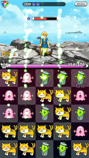 ネコと魔王のモンスター大作戦は、モンスターを3匹揃えて敵を倒していくバトル型のパズルです。