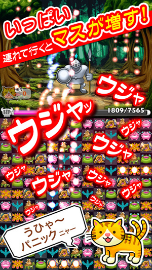 個性豊かなモンスターの組み合わせで100超えのコンボを目指せ!連鎖で多発するコンボが気持ちいい、手軽に楽しいRPGマッチ3パズル「ネコと魔王のモンスター大作戦」無料♪