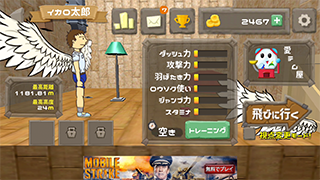 イカロスの翼で飛んだ距離を競う、育成&飛行ゲームだよ〜