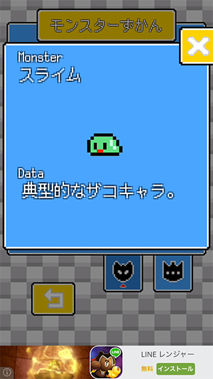 「図鑑」にモンスターとアチーブメントをコレクションできるなど、やりこみ要素もあるよ。
