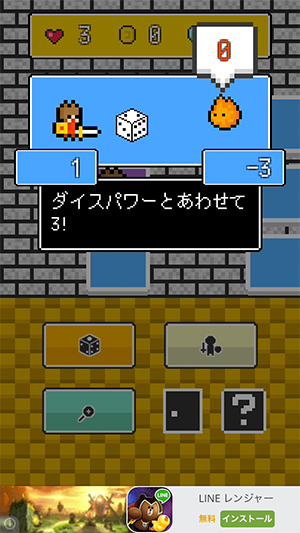 弱い敵は基本値がマイナスで、それに出目が加算されるから、序盤は楽勝だよ〜