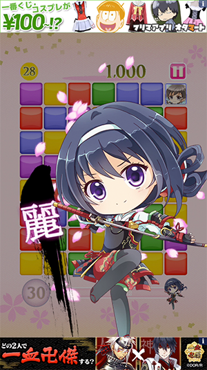 かわいい戦国武将キャラたちのスキルで爽快に連鎖するよ〜!小説とコラボした楽しいマッチ3ゲーム「戦国ぼっち ~ぼっちが戦国の姫達と絶体絶命を逆転するパズル~」無料♪
