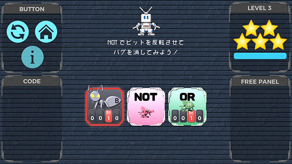 論理記号やバグのキャラクタがカワイイし、シャキンシャキンとバグを退治する感じが、とっても気持ちいいよ!