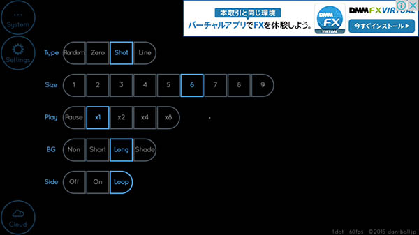 タイトル画面で[▲]アイコンを押すと設定画面アイコンが出てくるよ。