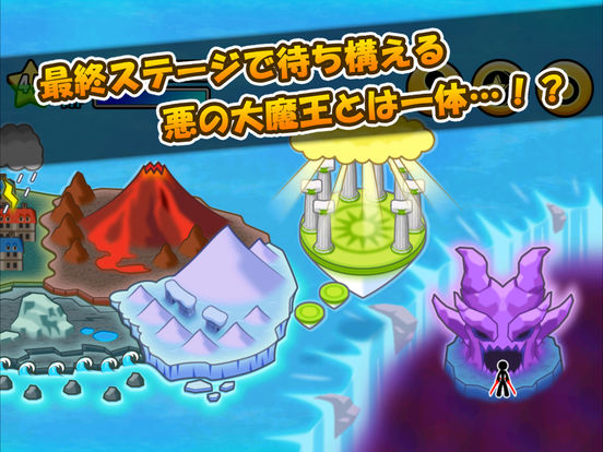 棒人間は「悪の大魔王」と「8人の使徒」を倒す旅をしていて、各ステージのボスを倒せば、ステージクリアになるよ。