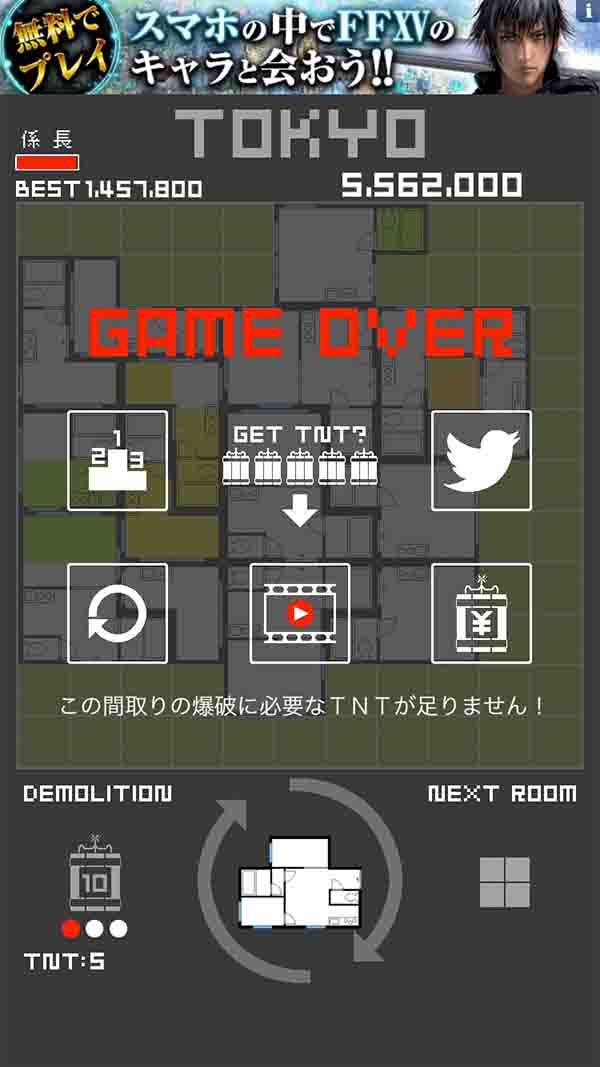 ゲームを進めていくと、空きグリットが少なくなって、配置できない間取りや、先を予想して置きたくない間取りも出てくるよ。