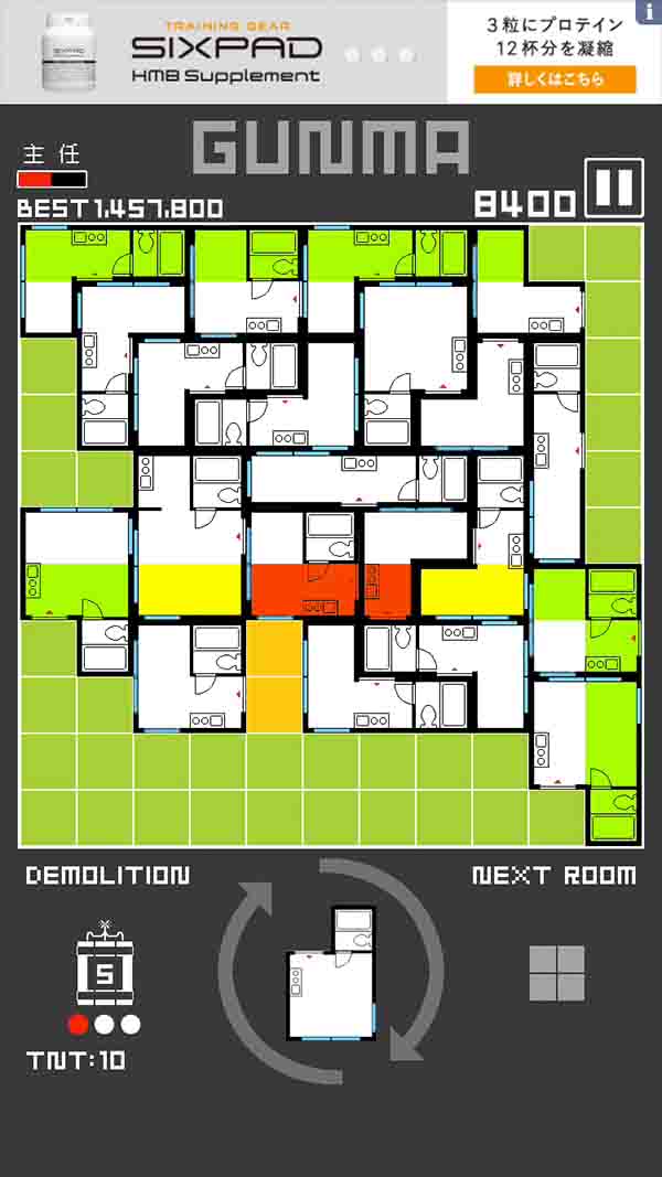エリアグリッドの中心ほど家賃が高くなるから、できるだけグリットの中心の間取りを消して、高スコアを狙いたいよ〜