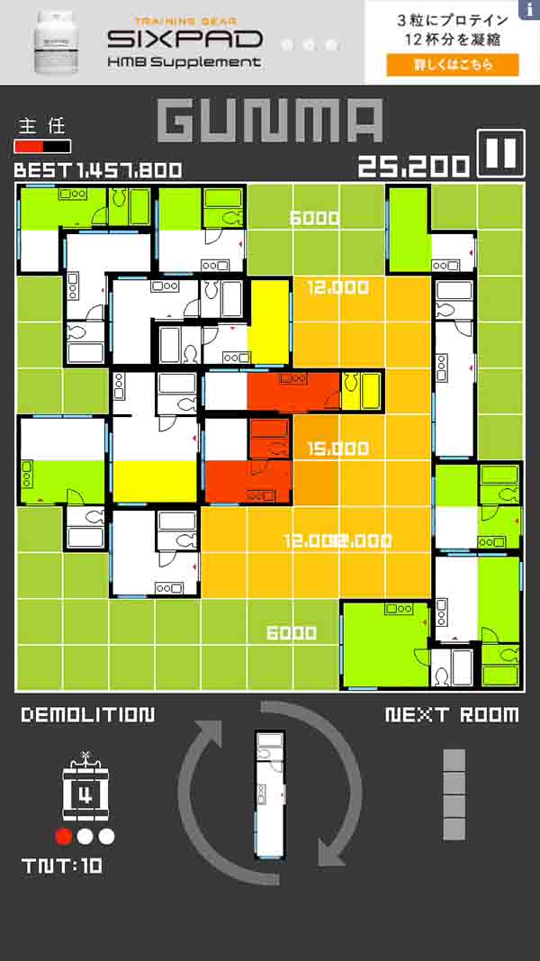 間取り全てに色がつくと消えて家賃分の得点をゲットできるよ!