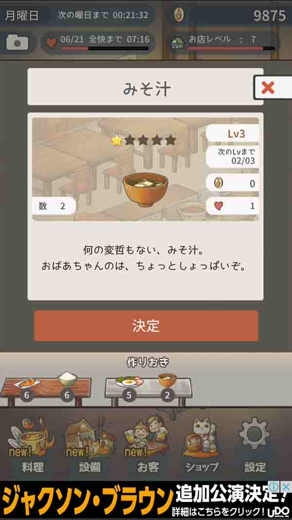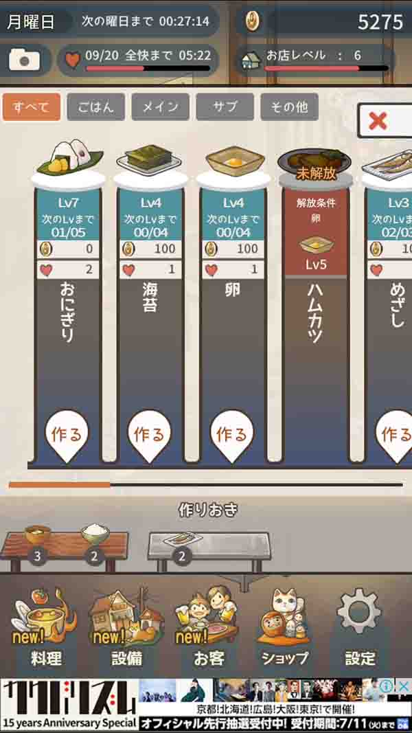 あとは、前もって料理を作り置きしたり、お金が貯まったら、お店の設備を充実させていくよ〜