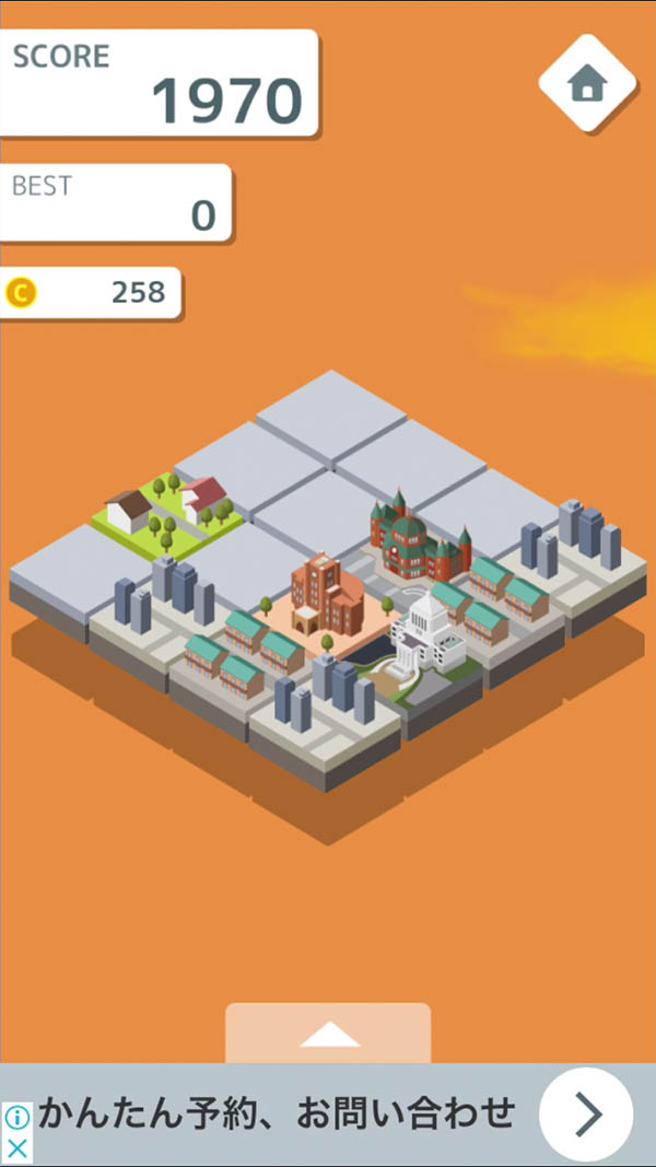 その時、”同じ建物” 同士はマッチして、ランクアップした建物になるよ〜