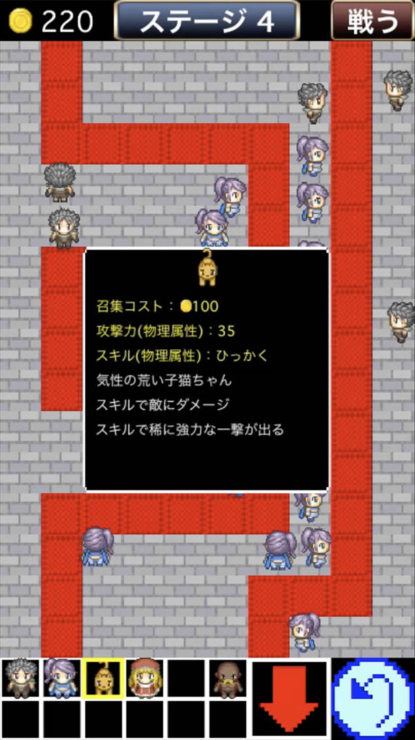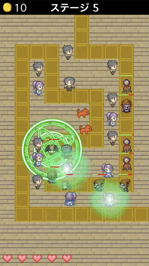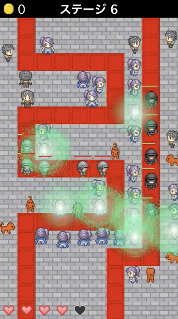 ゲームの特徴は、”キャラクターの強化無し” “防衛中のキャラの追加無し” なところだよ。