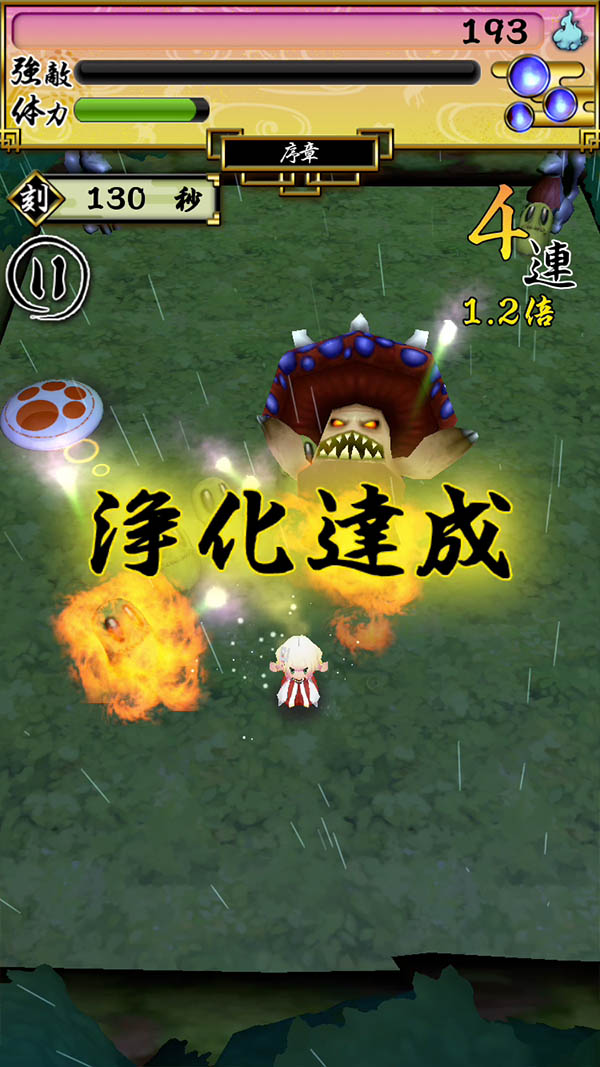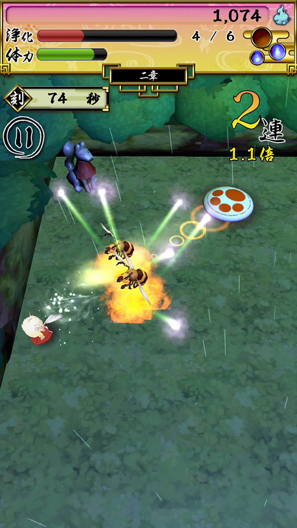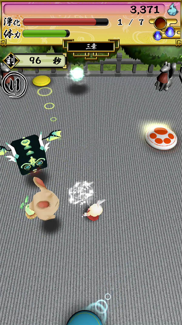 フィールド上で、珠を壁や悪霊に当ててバウンドさせれば、2連、3連と、連続攻撃が可能だよ〜