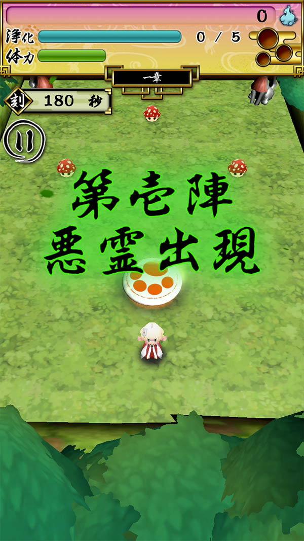 古の時、喋らない少女と言葉を喋る神使の狐の旅物語。エアホッケーのような3Dアクションが楽しいよ!「かんなぎ少女~和風吹っ飛ばしアクション~」無料♪