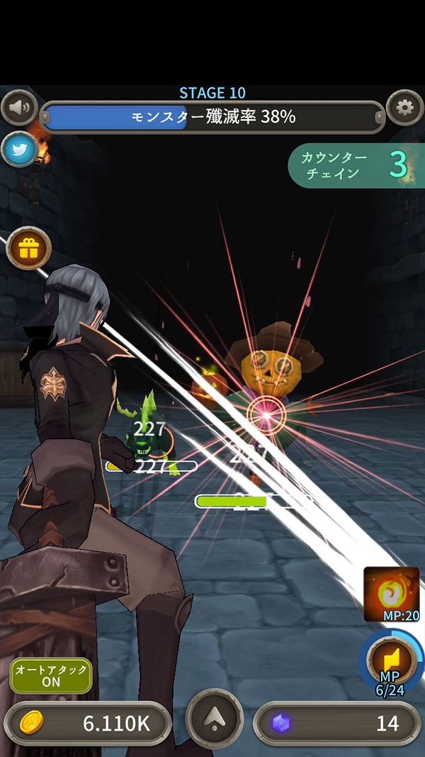 「オートアタック」は、自動でコインなどを稼いでくれるので便利だけど、カウンター攻撃をしないよ。