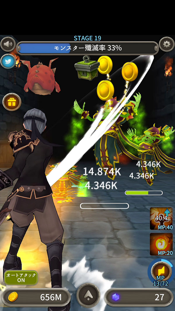 モンスターを倒すと、コインの他に宝石をゲットできるみたいだね?