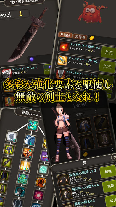 やり込み要素が豊富でいて、初心者でも簡単に遊べる、爽快なタップアクションRPG。