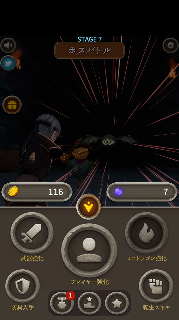 この他にも、宝箱をゲットして防具を強化できたり、一緒に戦ってくれる仲間の強化もできるよ〜