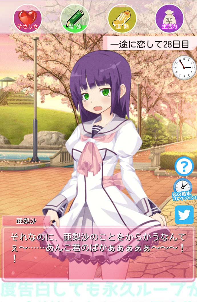 4つのパラメータの増減をコントロールして、なるべく告白までの期間を延ばさないといけないよ!