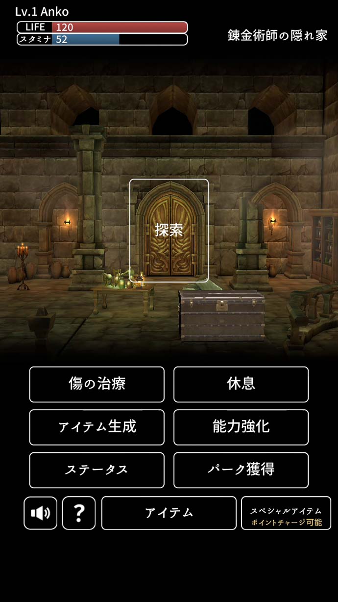 錬金で、装備品や回復薬などのアイテムを作ることが、攻略に必須だよ。