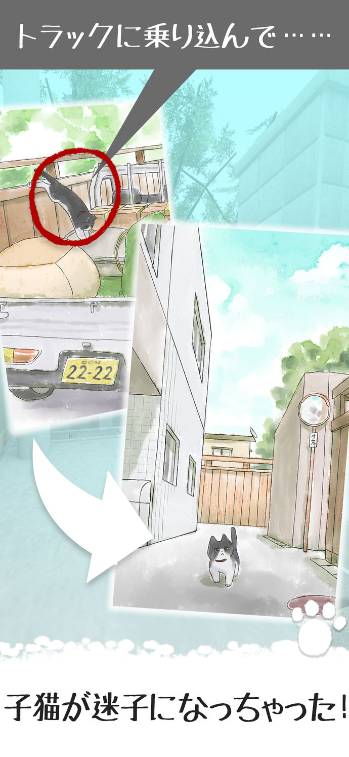 路地裏に迷い込んでしまった、幼い子猫が、大好きな飼い主のもとへと帰ることができればクリアだよ。