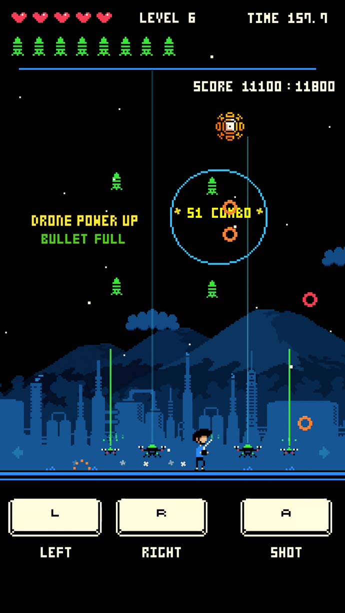 レトロシューティング好きにはたまらない、レトロなドット絵とサウンドが魅力の楽しいシューティングゲーム。