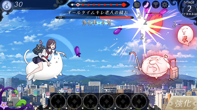 穢れは攻撃してこないので、連打でどんどん浄化できるよ〜