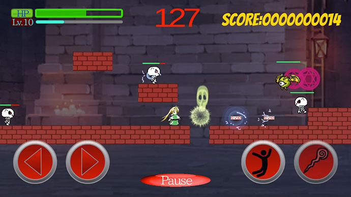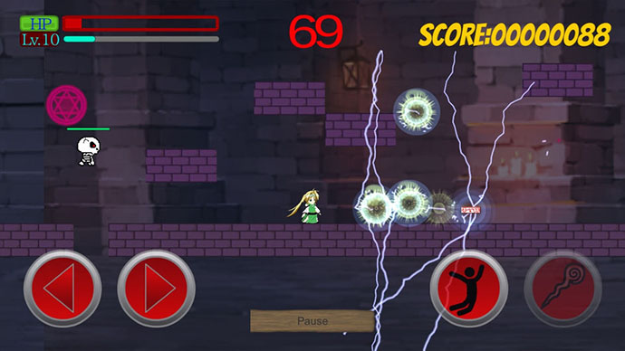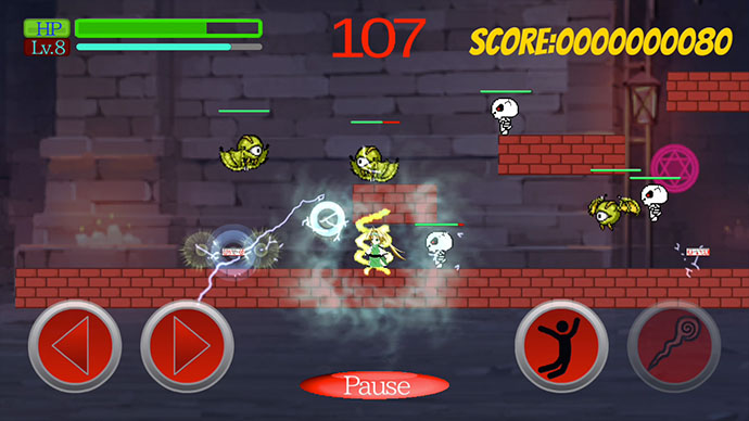豊富なスキルで、どんどん強力な魔法にして、手強いステージも爽快に楽しめる、2Dスクロールアクションゲーム。