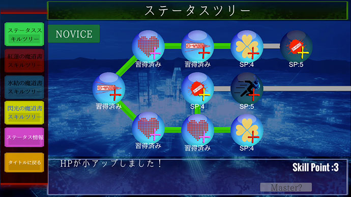 最初は主人公が弱いので、動き回るより敵を多く倒し、スキルポイントを溜めてスキルを開放していくのがいいかも〜