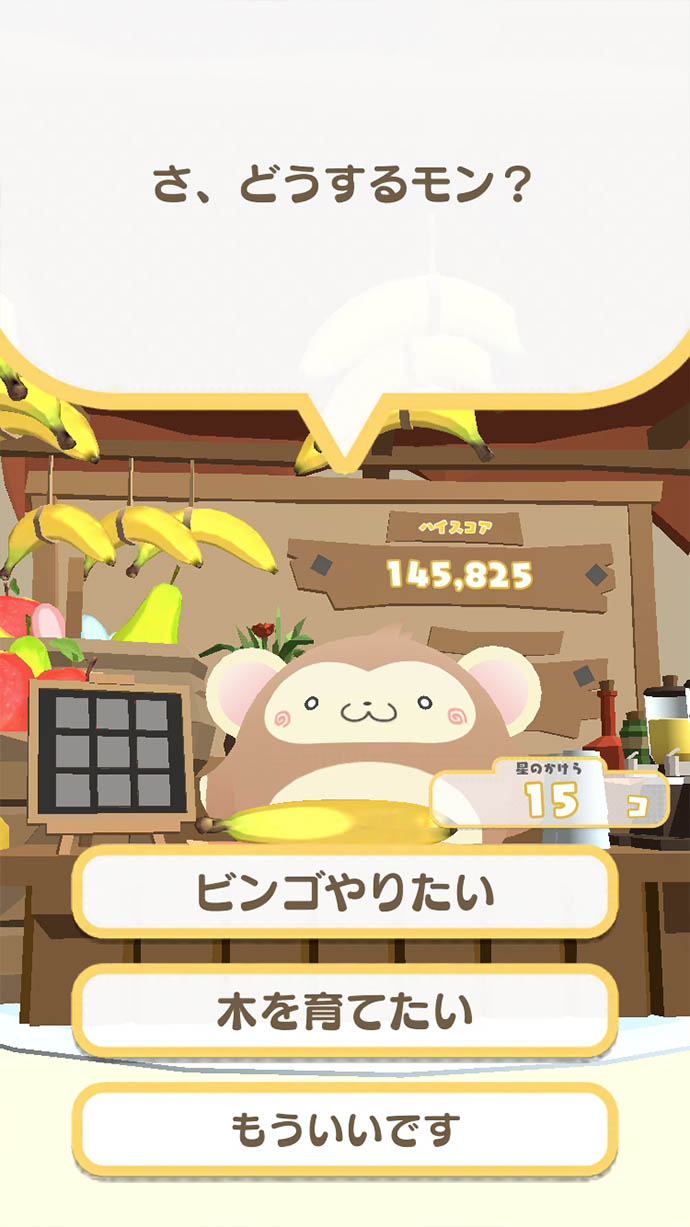 「おともだちやさん」では、プレイ中に集めた果物やキャンディを “星のかけら” に変えたり、 “星のかけら” を使って、ガチャで新しいキャラクターを手に入れることができるよ。