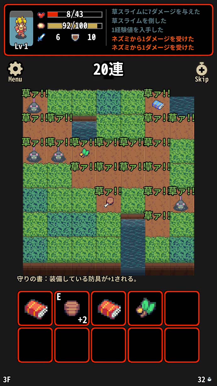 ダンジョンの自動生成と豊富なアイテムで、何度でも遊びたくなる、楽しいローグライクゲーム。