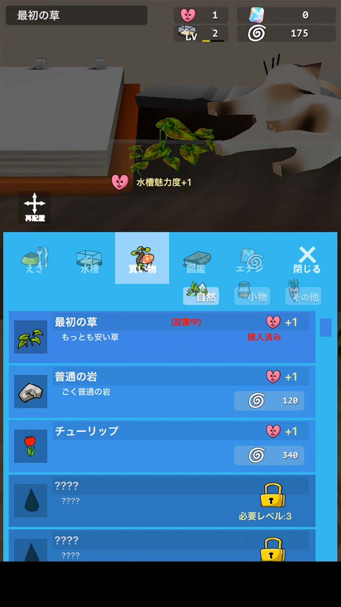 不思議な生き物を水槽におびきよせ、観察して楽しむ、放置育成ゲームだよ〜