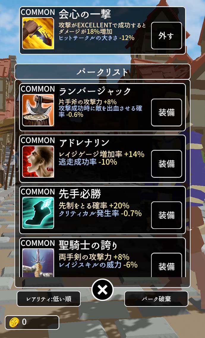 パークスキルは、つけるだけで効果があるパッシブスキルのことだよ。