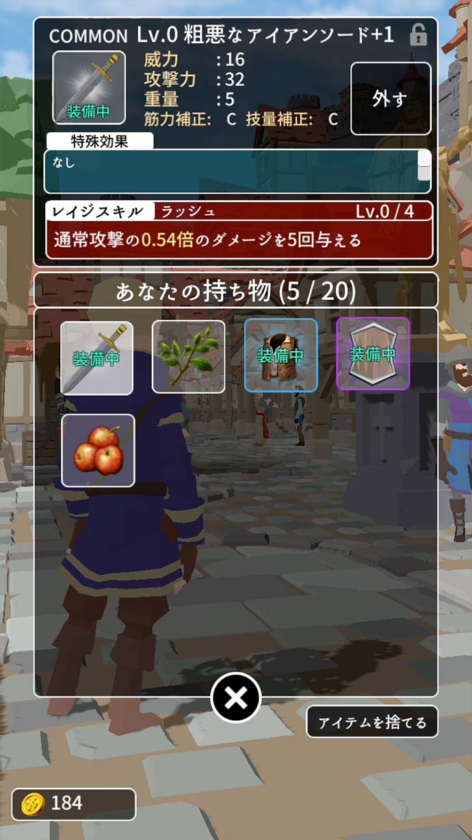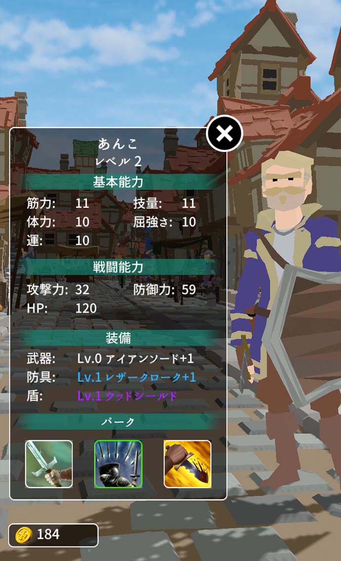 他には、アイテムを「商店」で売ってお金を貯めて「訓練所」でステータスを上げる方法もあるよ〜