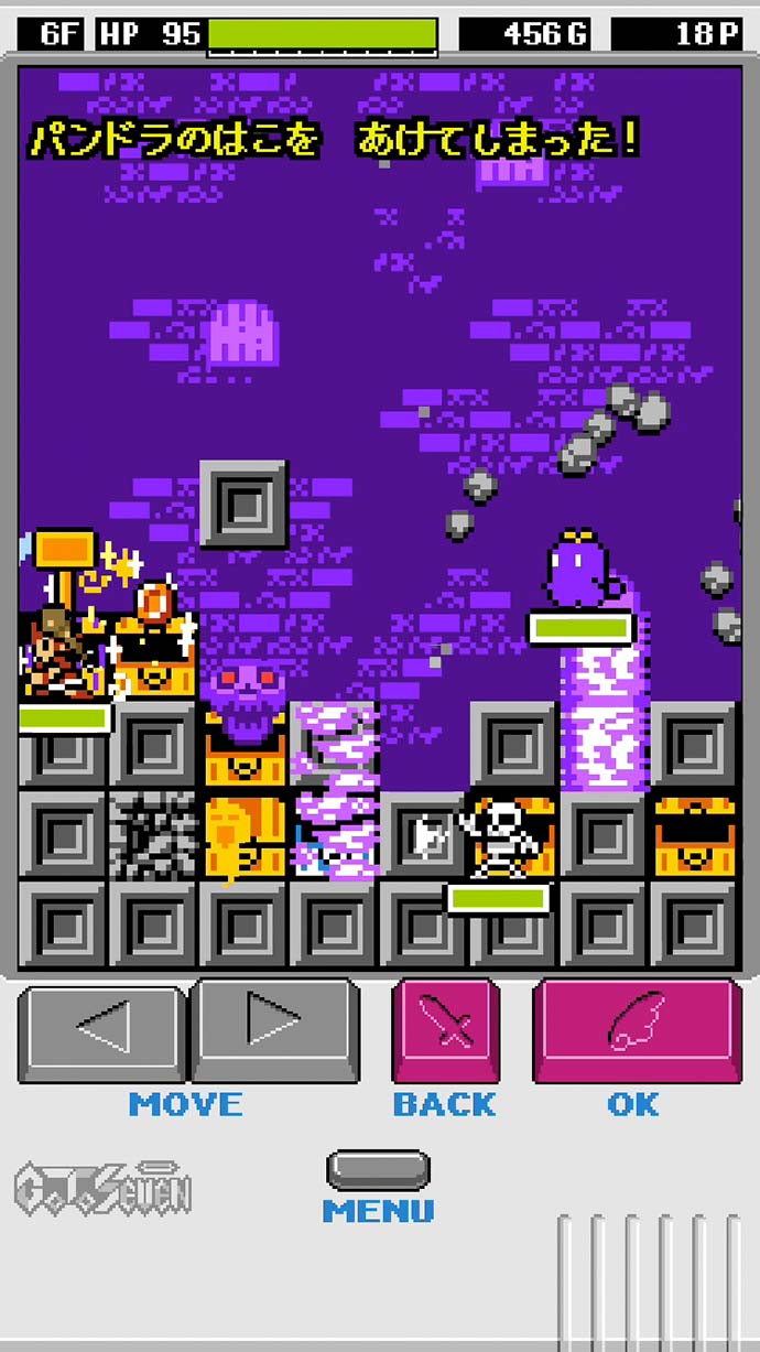 たまに、モンスターと宝箱を大量に生み出す「パンドラの箱」もあって、一瞬にしてフロア全体が ”モンスターハウス” 状態になることも!