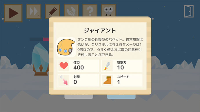 ゲームはステージ制で、クリア条件は「敵を全て倒す」または「クリスタルの破壊」の2つだけだよ。