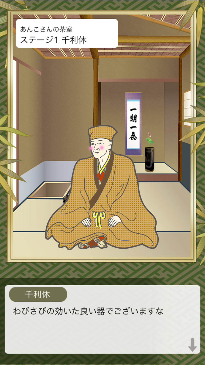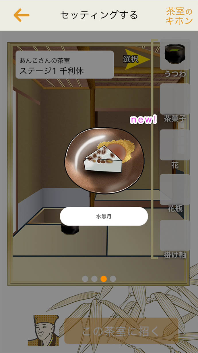 ゲームは、茶人や武将を茶室に招くよ。