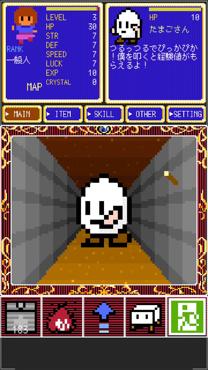主人公は物理攻撃だけでなく、[回復][攻撃][ワープ][召喚][エスケープ]の各種魔法も使えるよ。