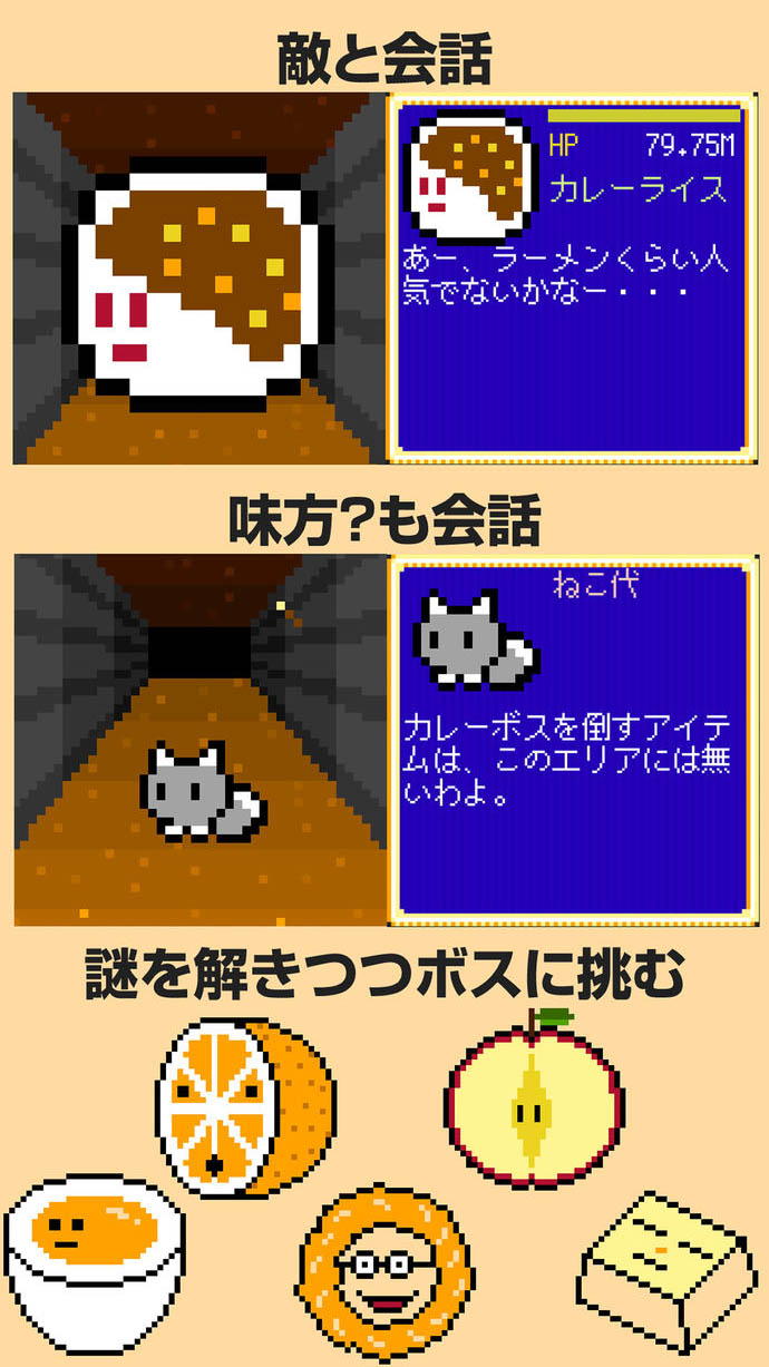 前作「Clicker Tower RPG 」の2と3も、食べ物キャラがかわいいよ〜