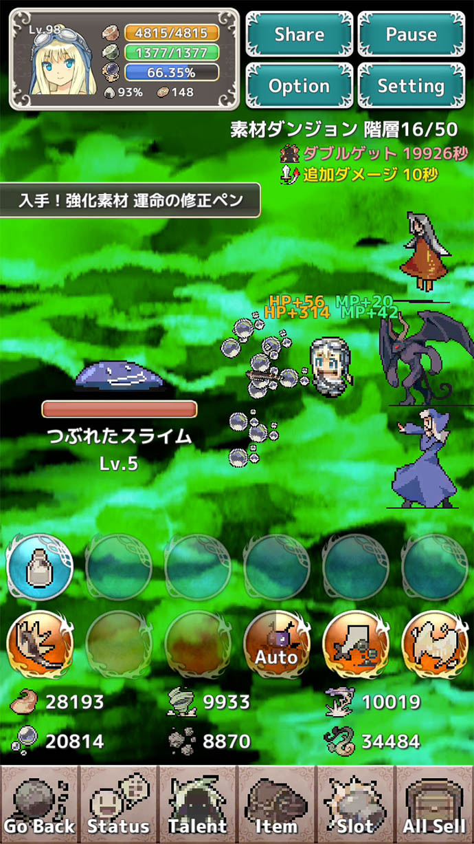 戦闘に参加していないメンバーで、アイテムや経験値を「放置生産」できるようになったんだね。