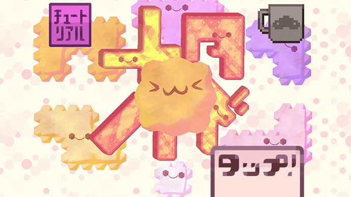 ステージ制のパズルで、中央のピースを他のピースで囲むことができたらクリアになるよ。