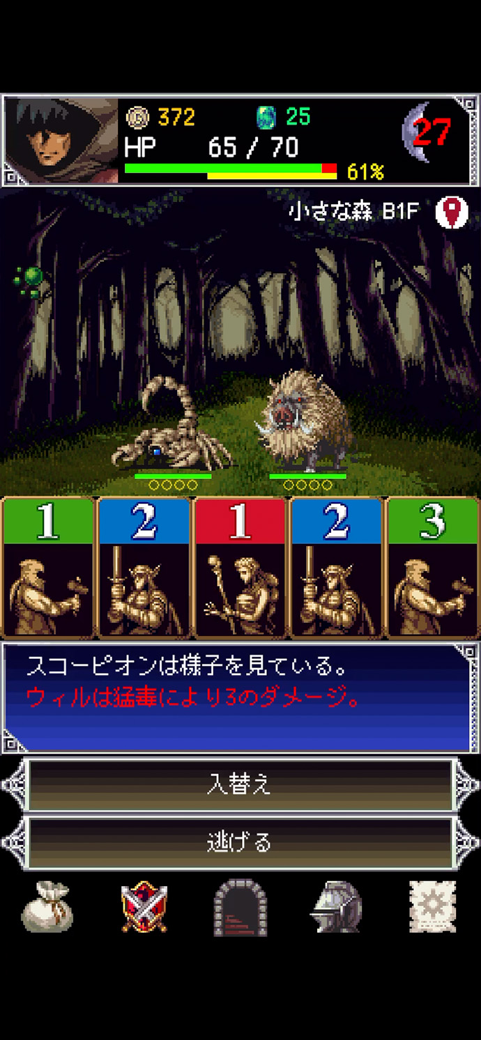 他にもアイテム(回復、治療、ブースト、魔法など)を使うとか、次のバトルのために強いカードを作って温存するとか、いろんな戦い方があるよ。