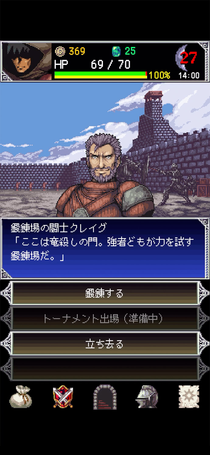 疲れきらないうちに引き返して、町でステータス強化や装備強化をするんだね〜